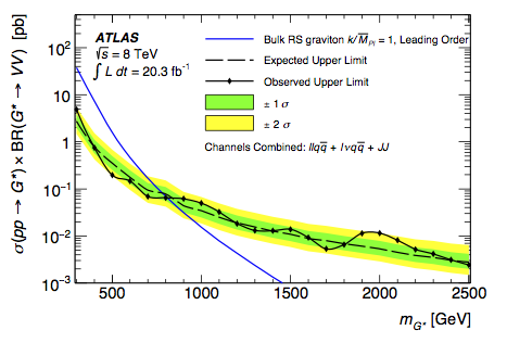 Observed limit for pp-> G*->VV process. This is a combination of several channels and implicitly as...