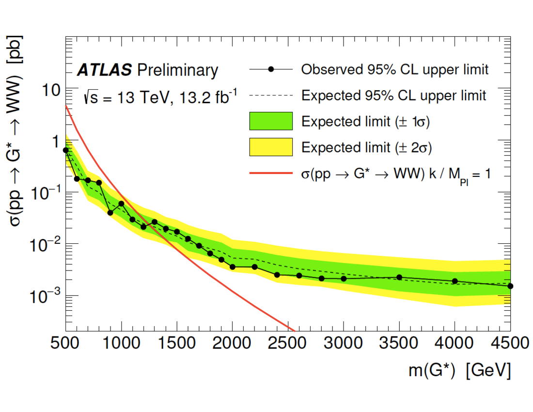 Observed limit for the RS KK Graviton production cross section times branching ratio to 2 W bosons, ...