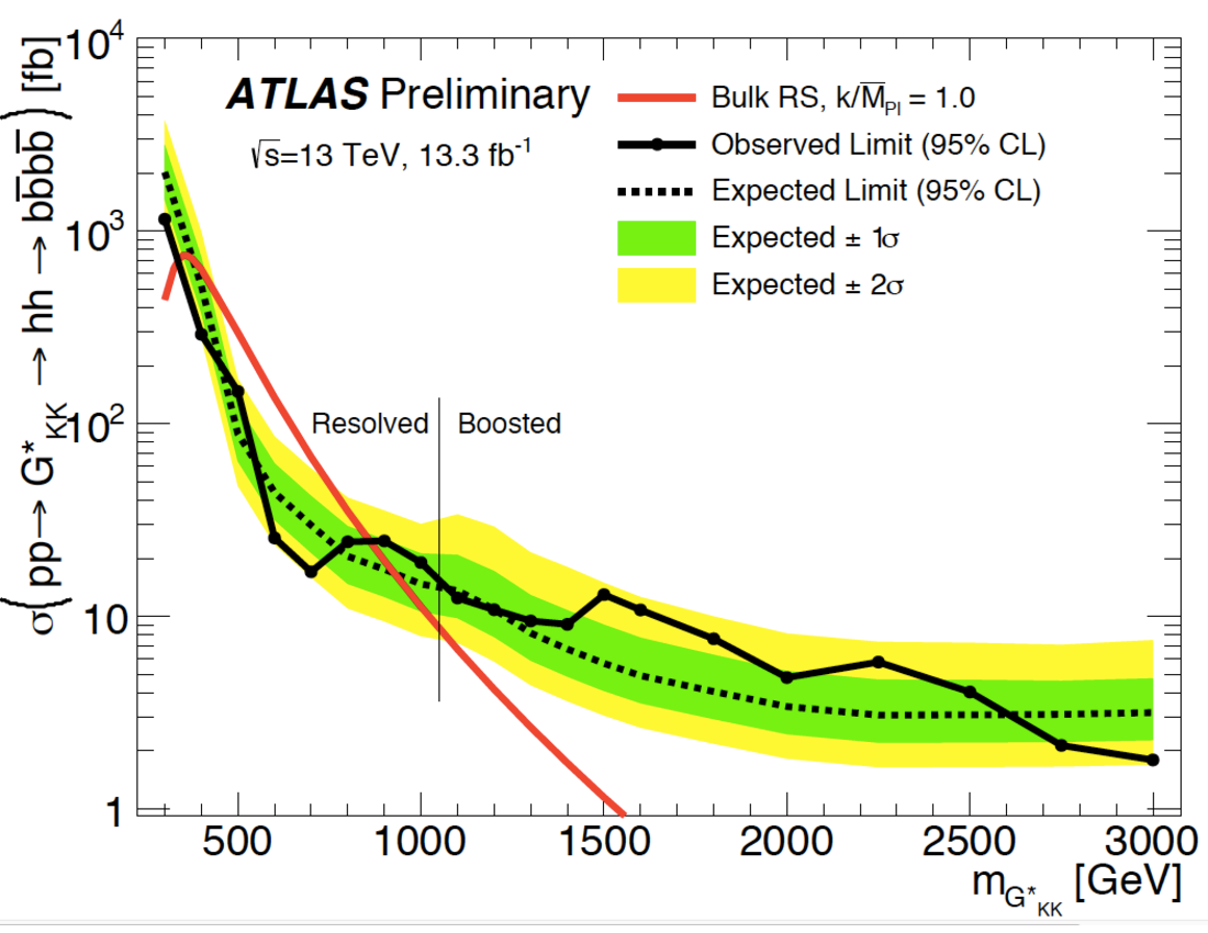 Observed limit for the RS KK Graviton production cross section times branching ratio to 2 Higgs boso...