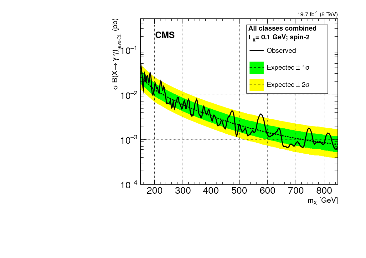 Observed limit for the spin-2 resonance production cross section times branching ratio to 2 photons,...