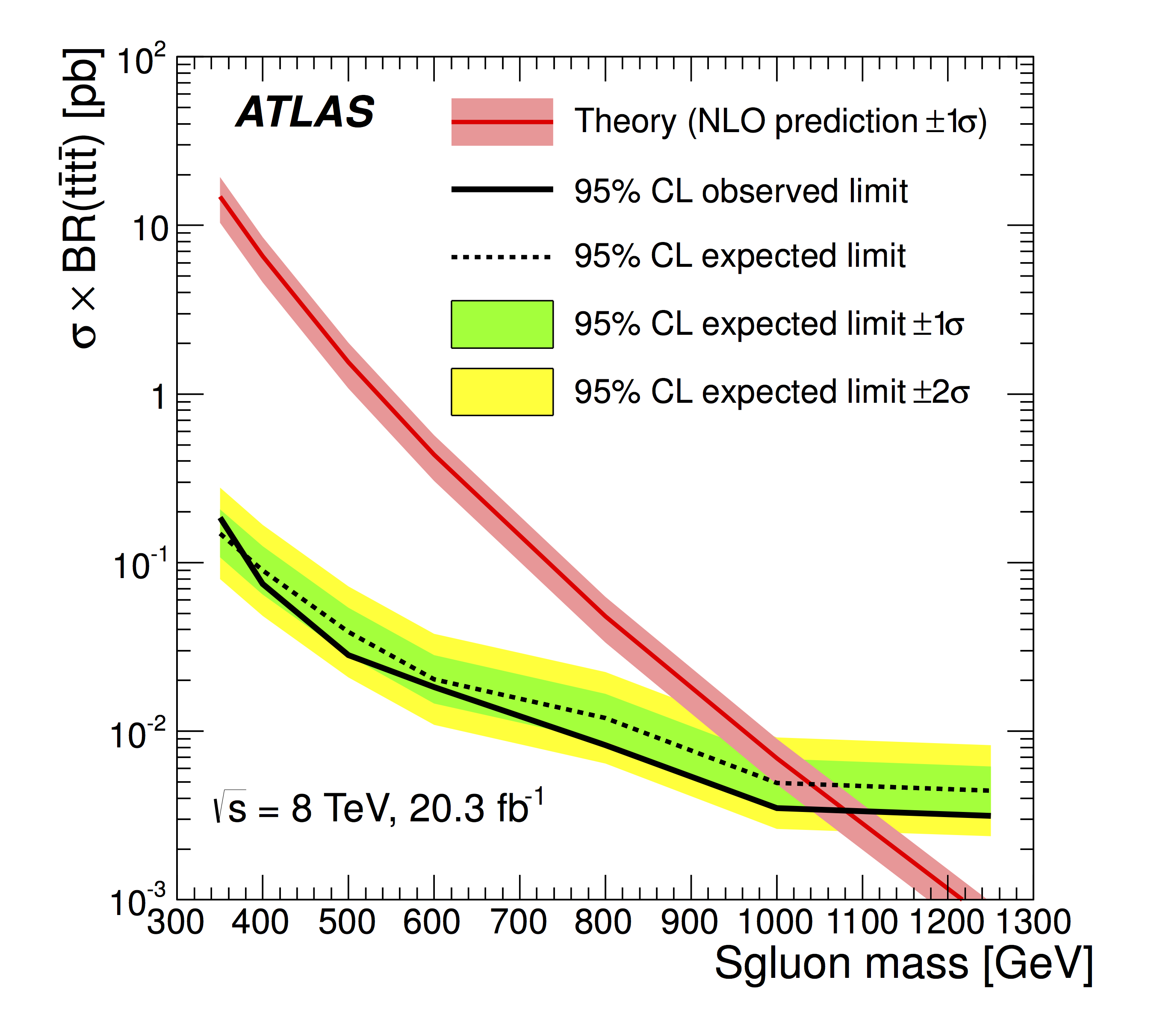 Cross-section x BR(tTtT), sgluon search...