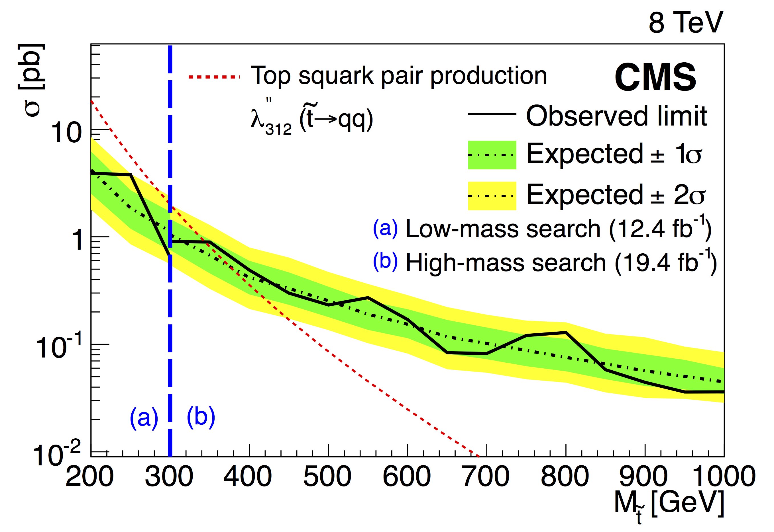 Cross-section vs Mt for RPV pp > stop stop->qqqq search...