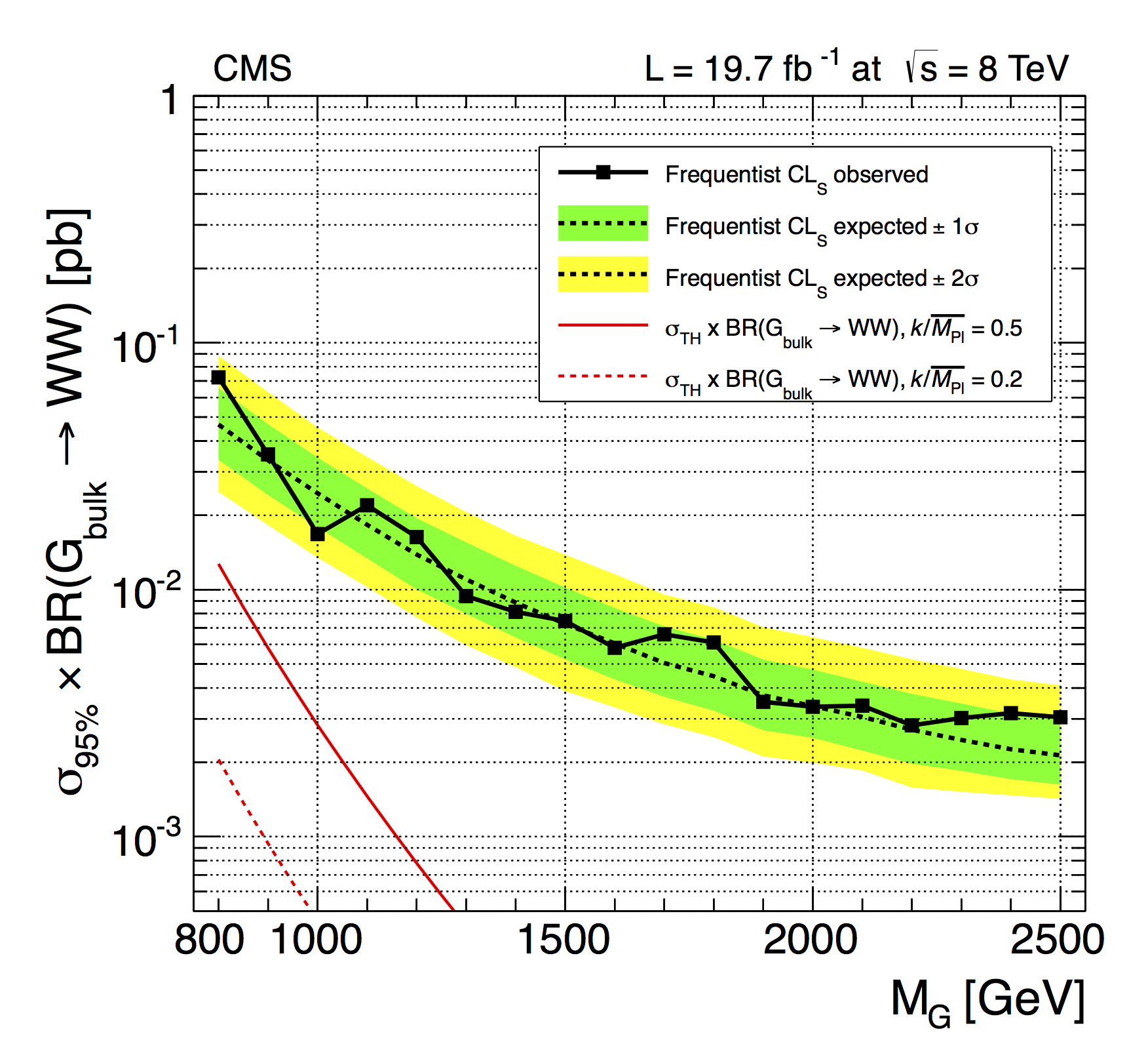 Cross-section x BR(G_bulk->WW) vs MG...