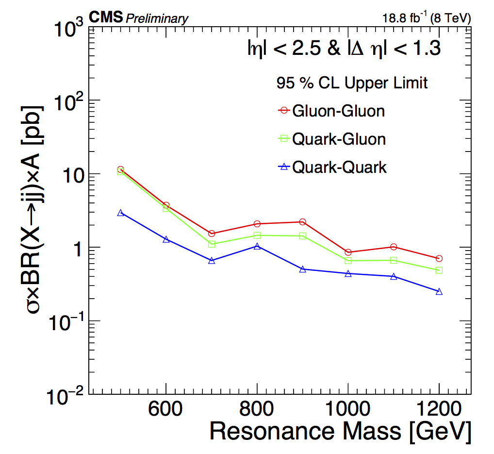Cross-section x BR(X->jj) x A for narrow resonance decay...