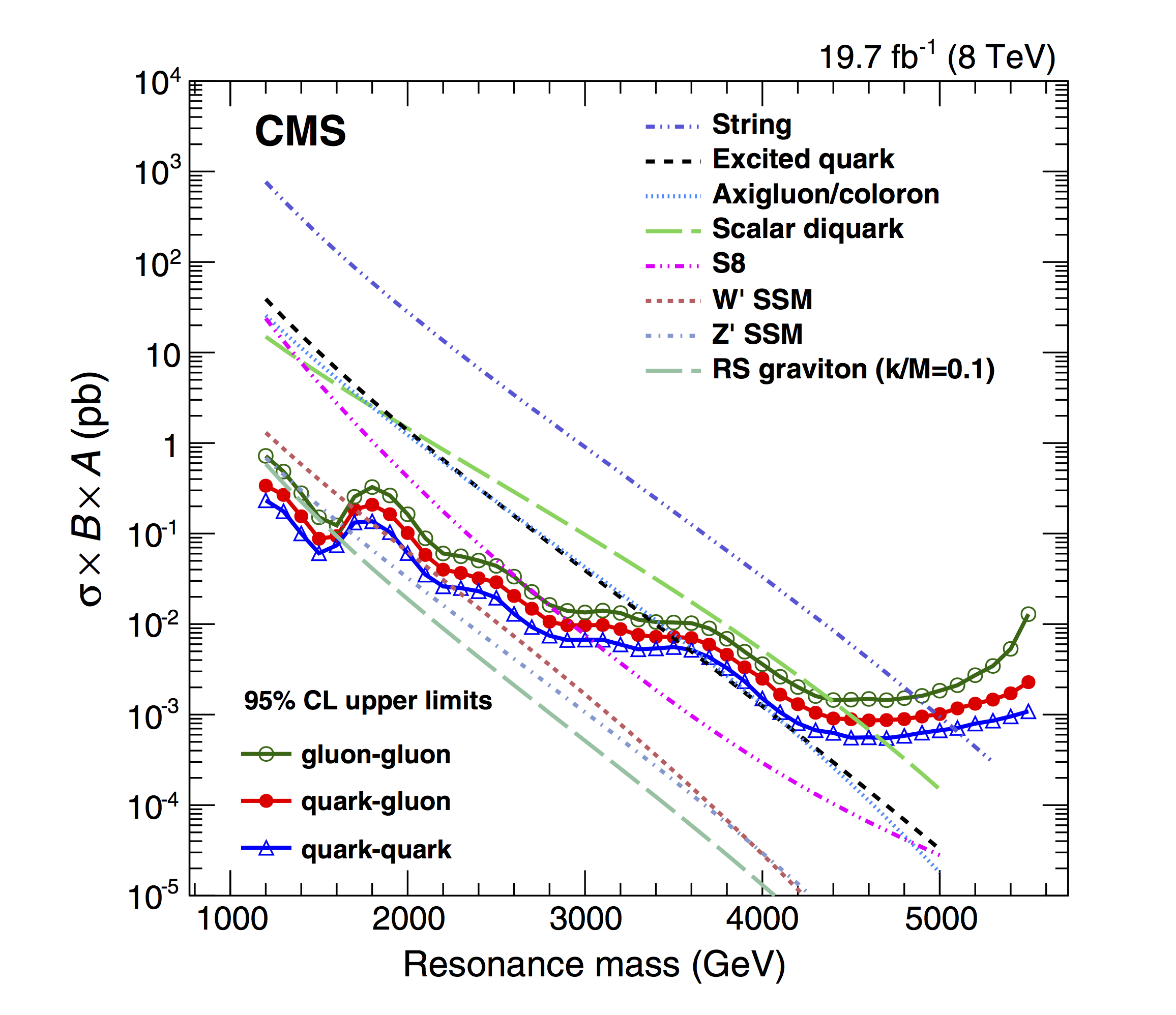 Cross-section x BR x A vs resonance mass for narrow dijet resonances...
