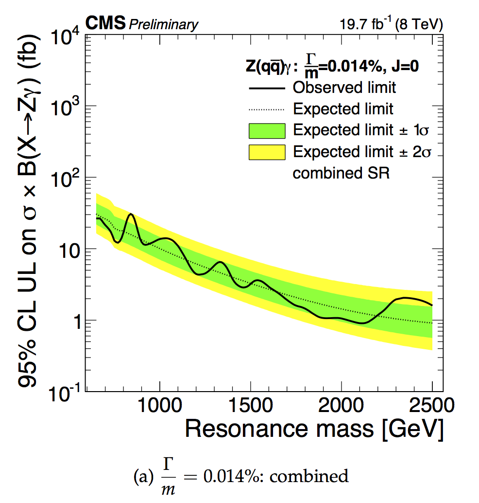Cross-section x BR(X->Zgamma) vs resonance mass for narrow width...