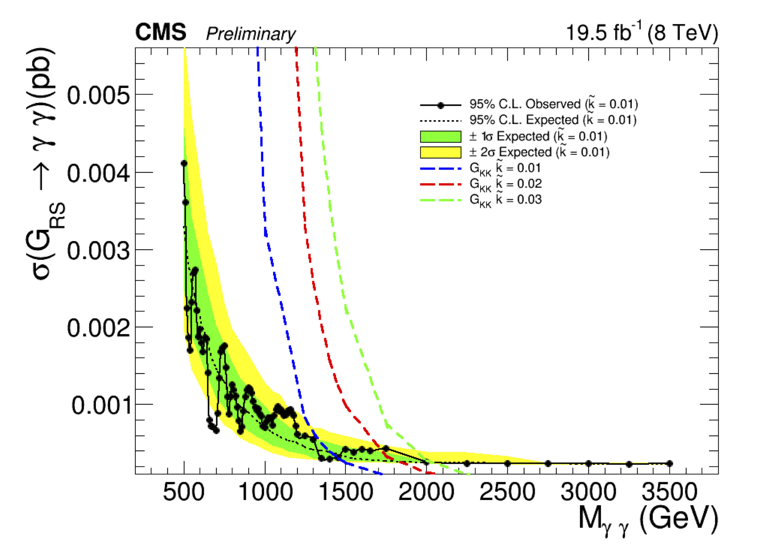 Cross-section(G_RS->gamma, gamma) x BR vs diphoton invariant mass...
