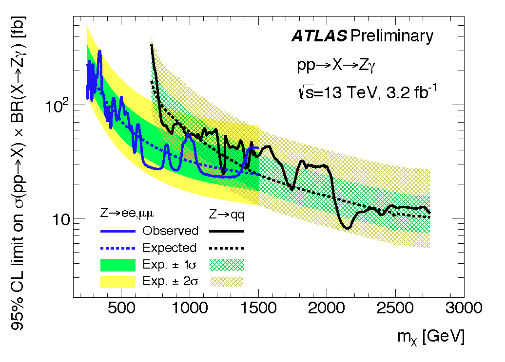 Cross-section(pp->X) x BR(X->Z gamma vs Mx, Z-> ee, \mu\mu and Z-> qq combined...