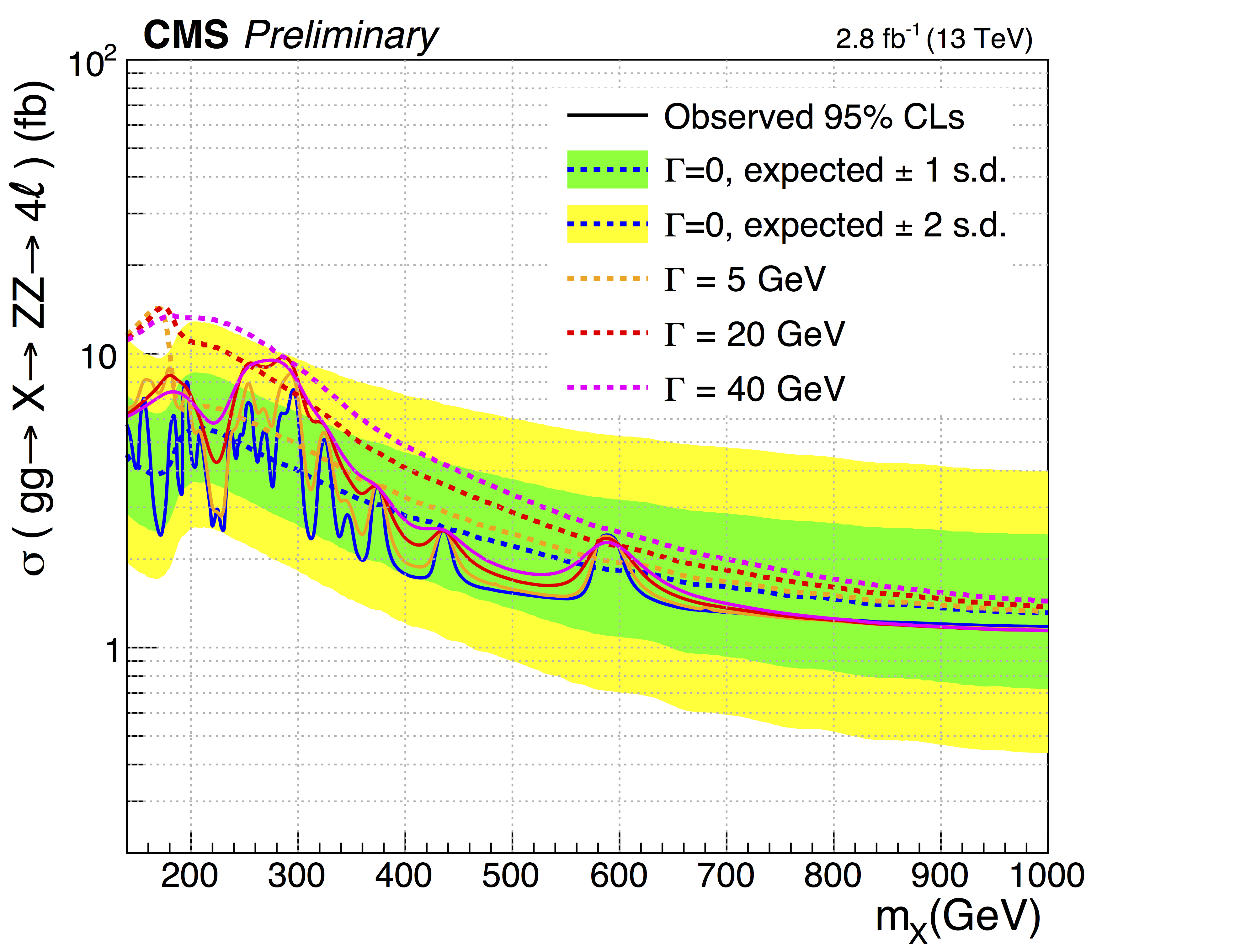 Cross-section(gg->X->ZZ->4l) vs Mx...