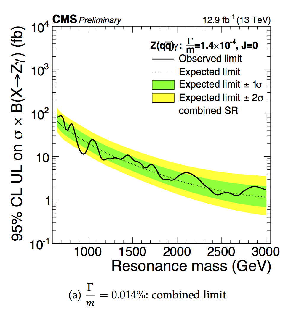 Observed and Expected limits on the production cross section times branching fraction X to Z photon ...