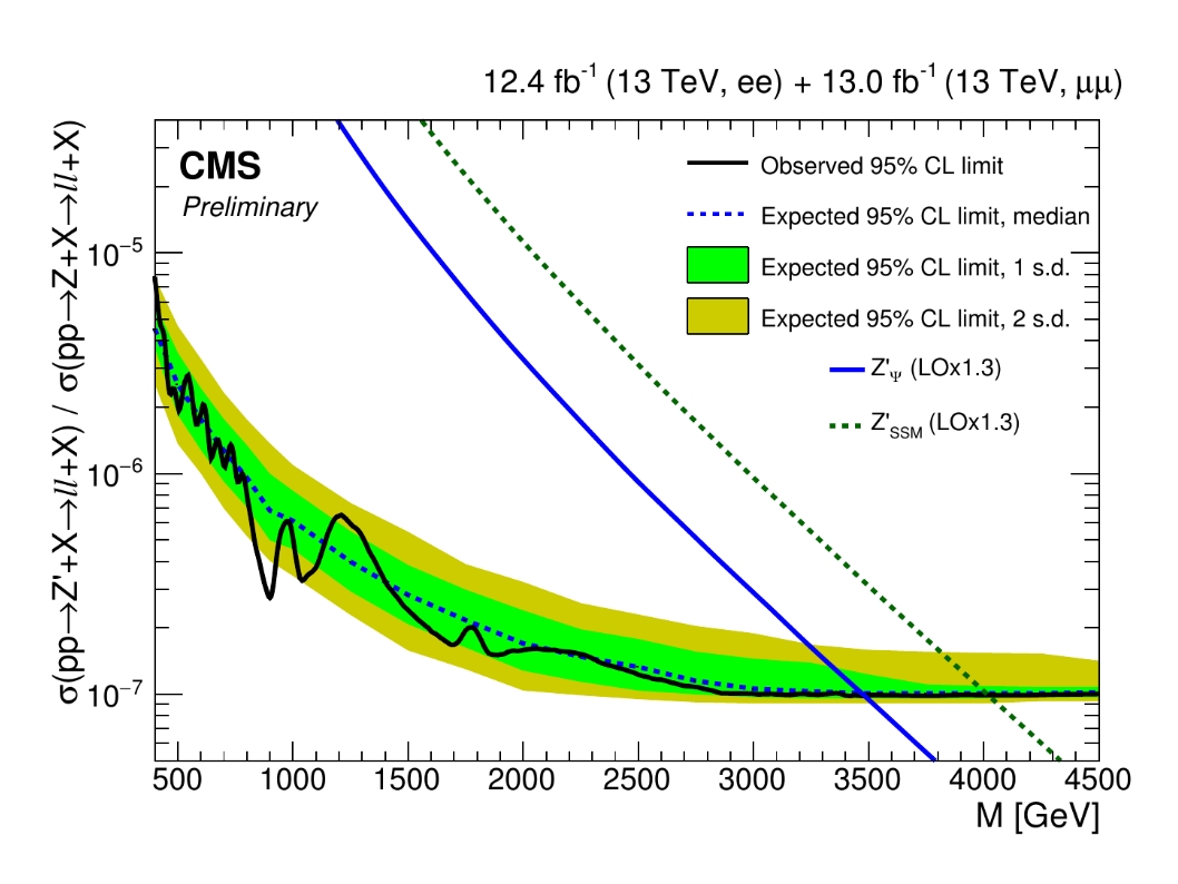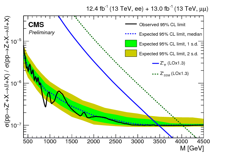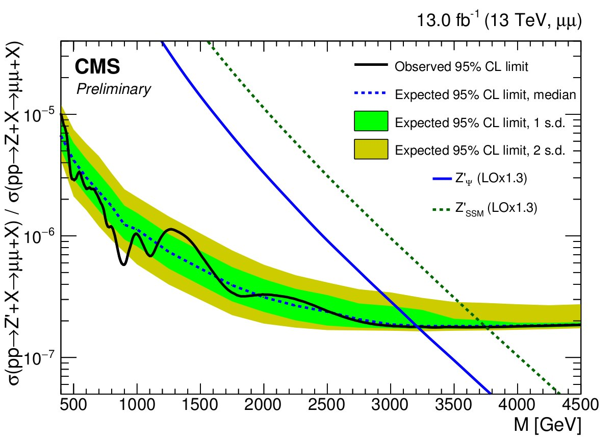 Observed CS limit for Z' or Z to muon muon, CS(pp->Z'+X->mu,mu+X) / CS(pp->Z+X->mu,mu+X)...